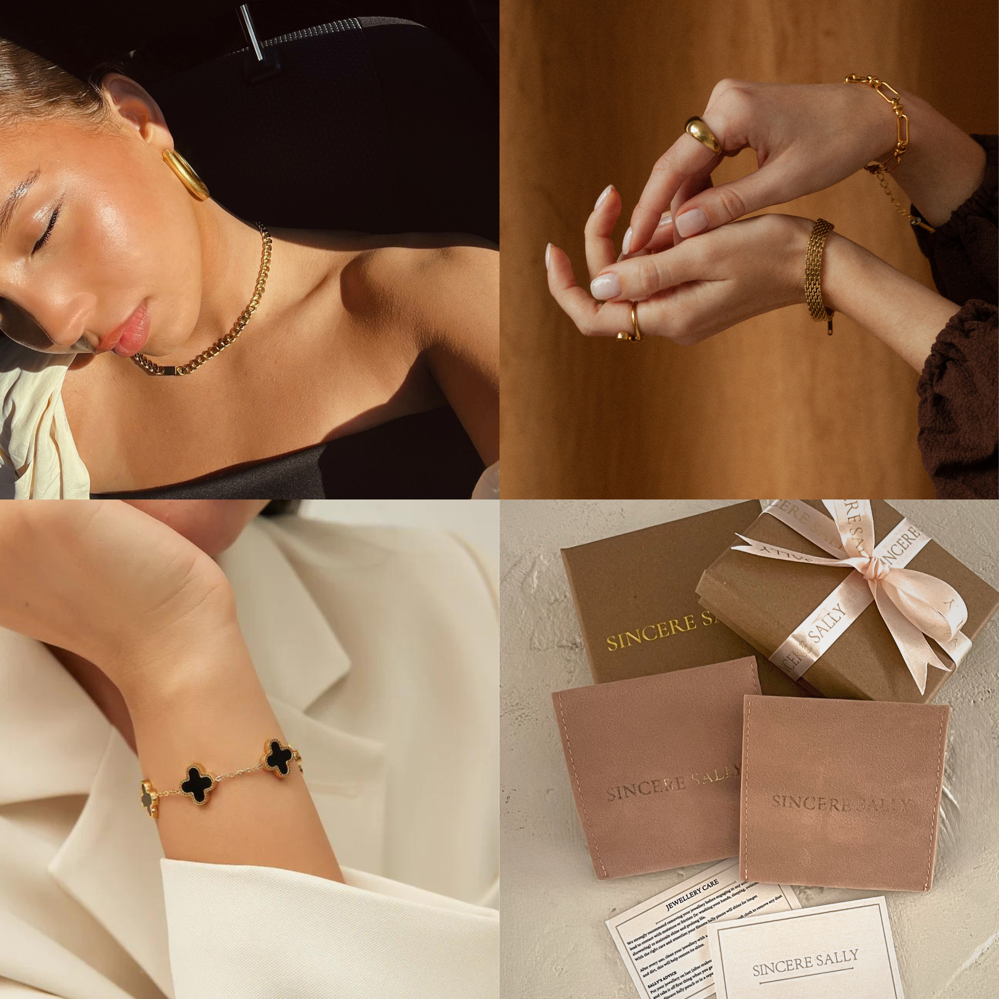 Not only are our jewelry pieces ethically designed, sourced and manufactured, but all of our packaging is also made from recycled materials and our boxing is fully recyclable! Along with this, all of the staff involved in our brand Sincere Sally work in sustainable and ethical working conditions.