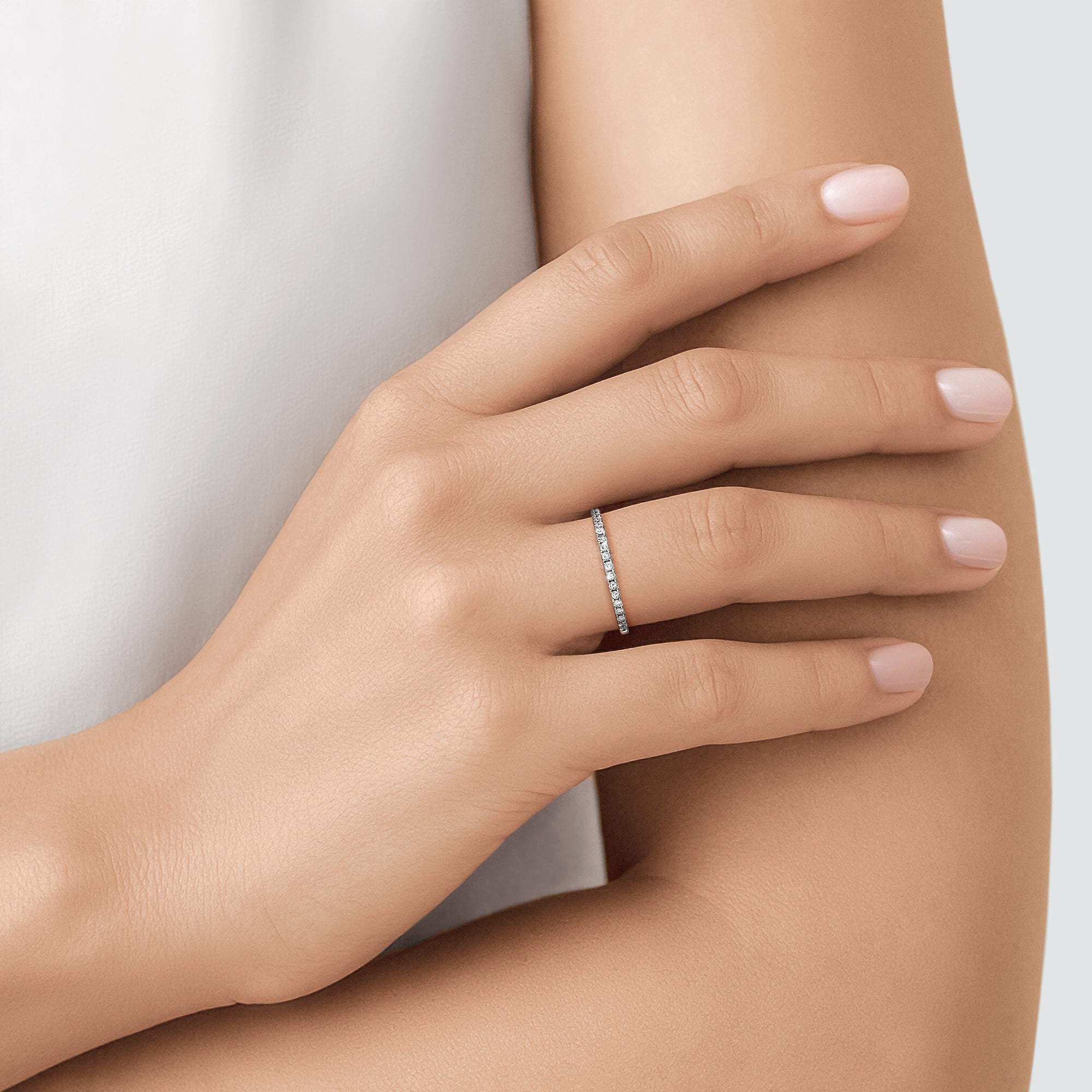 Hand-finished to shine through every chapter of your life, the Eternity Ring Band is a timeless design crafted for stacking or wearing as a radiant standalone piece. Its pavé setting encircles the band completely, offering continuous brilliance and elegance from every angle.