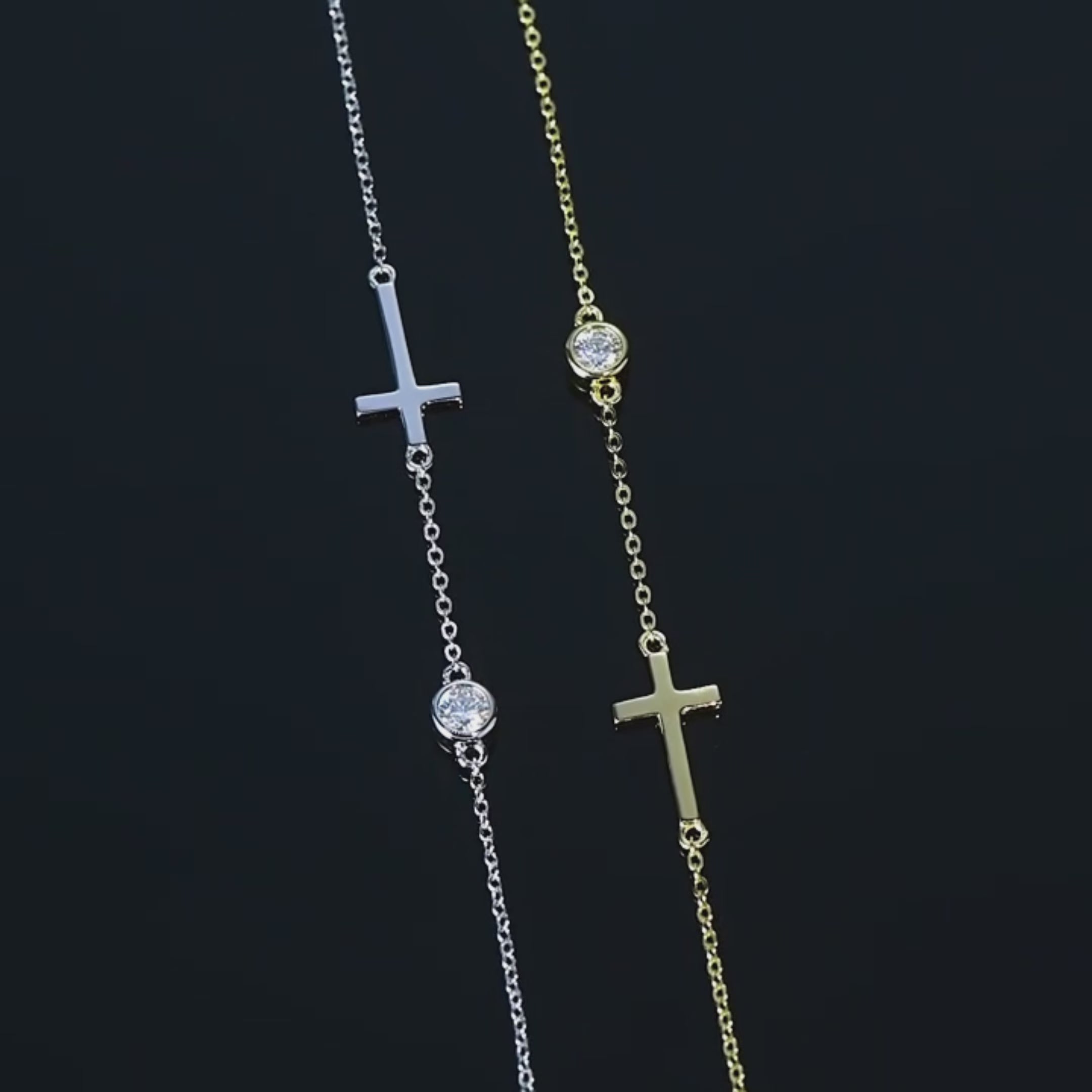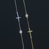 - Dainty chain necklace featuring a minimalist cross motif with a single sparkling moissanite accent, created as a timeless symbol of faith and everyday elegance