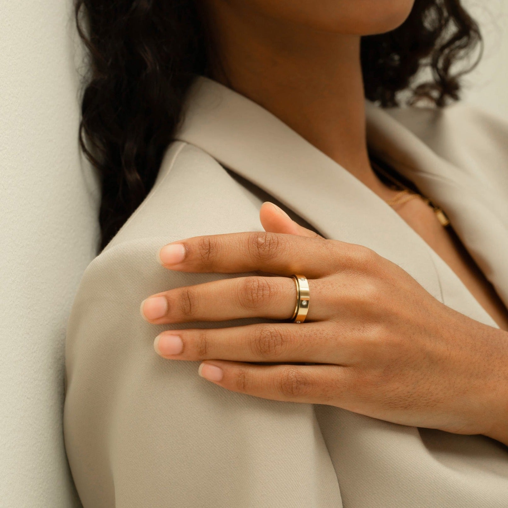 Спокійне чи хаотичне, відоме кільце для заспокоєння продумано розроблене, щоб принести спокій вашому розуму та елегантність вашому стилю. Це вишукане Браслет-фіджет , інкрустований вручну кубічним цирконієм A5, ловить світло з діамантоподібним блиском, водночас забезпечуючи тихий комфорт завдяки своєму плавному обертовому дизайну.